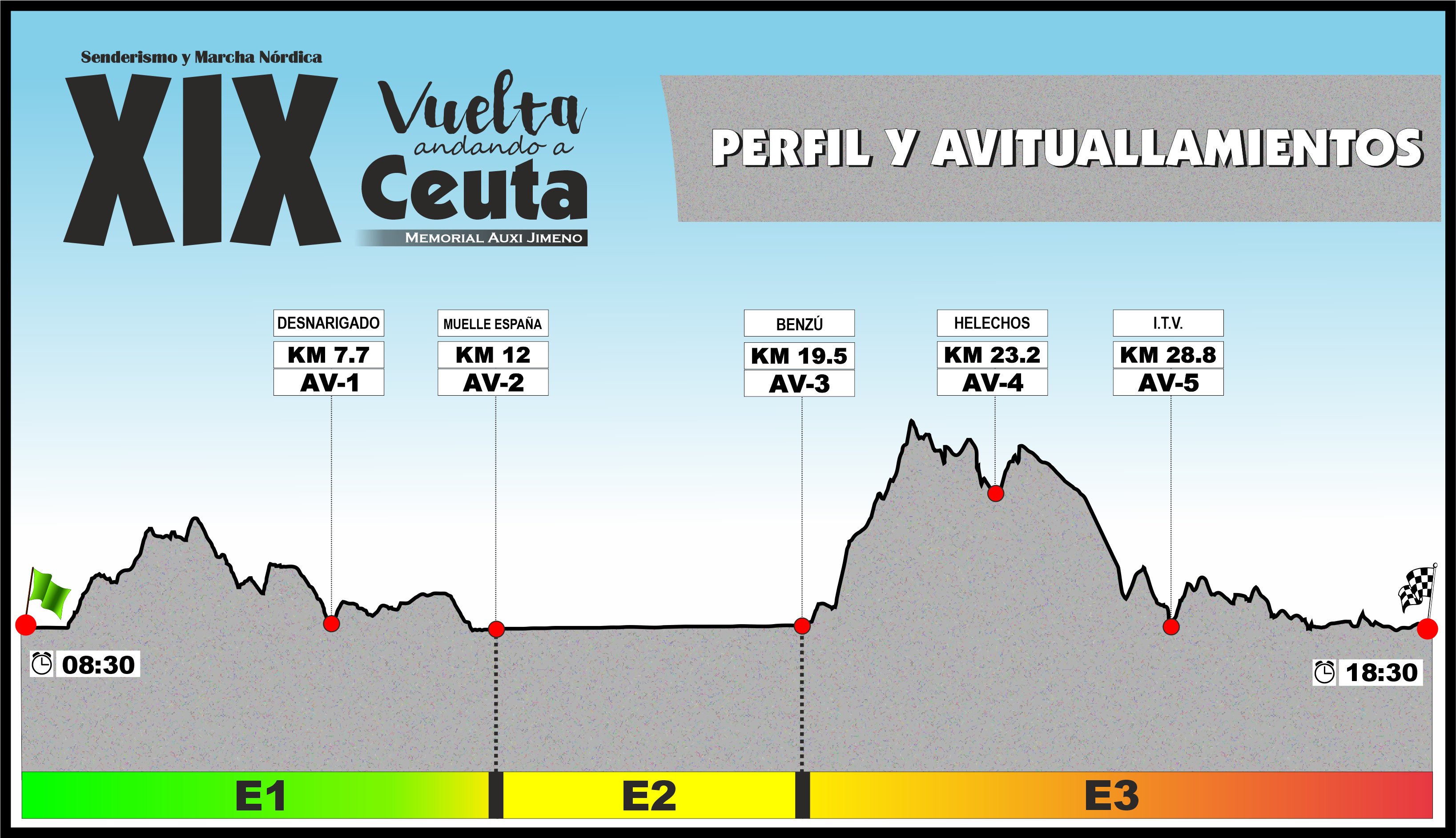 Se establecerán avituallamientos aproximadamente cada 5 km a lo largo del recorrido y otro final en línea de meta.